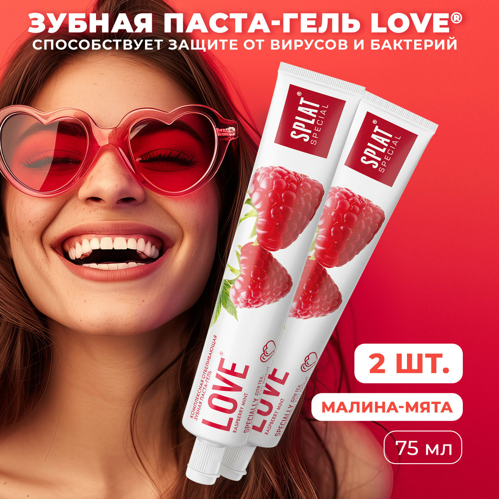 Зубная паста для отбеливания зубов SPLAT Special LOVE, защита от бактерий и вирусов , 75 мл, 2 шт