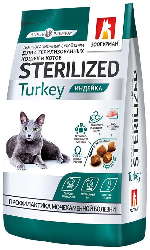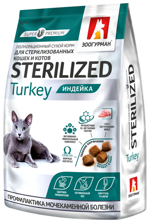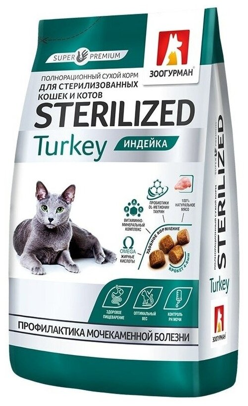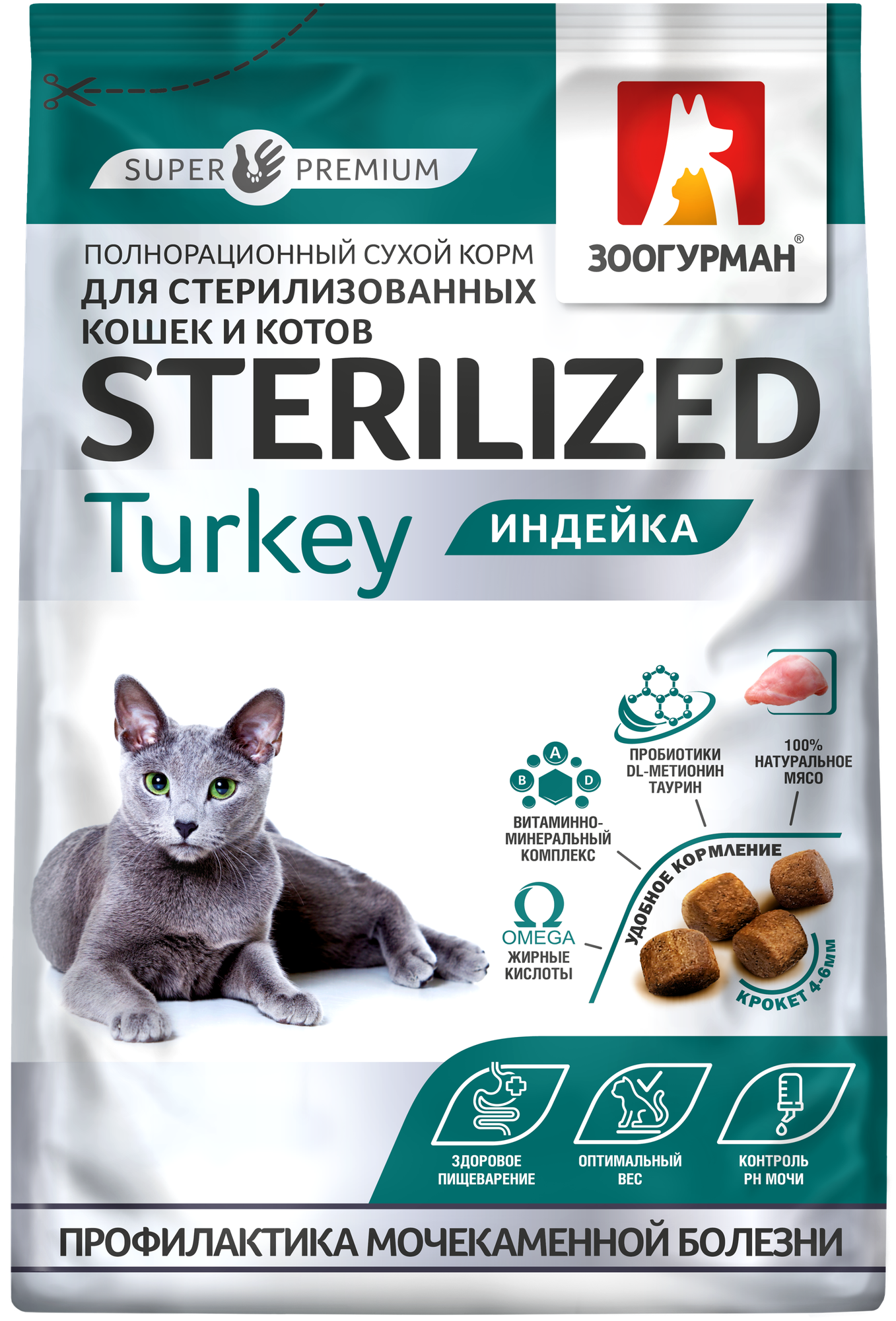 Корм сухой Зоогурман Sterilized профилактика мочекаменной болезни, полнорационный, Индейка 1,5 кг