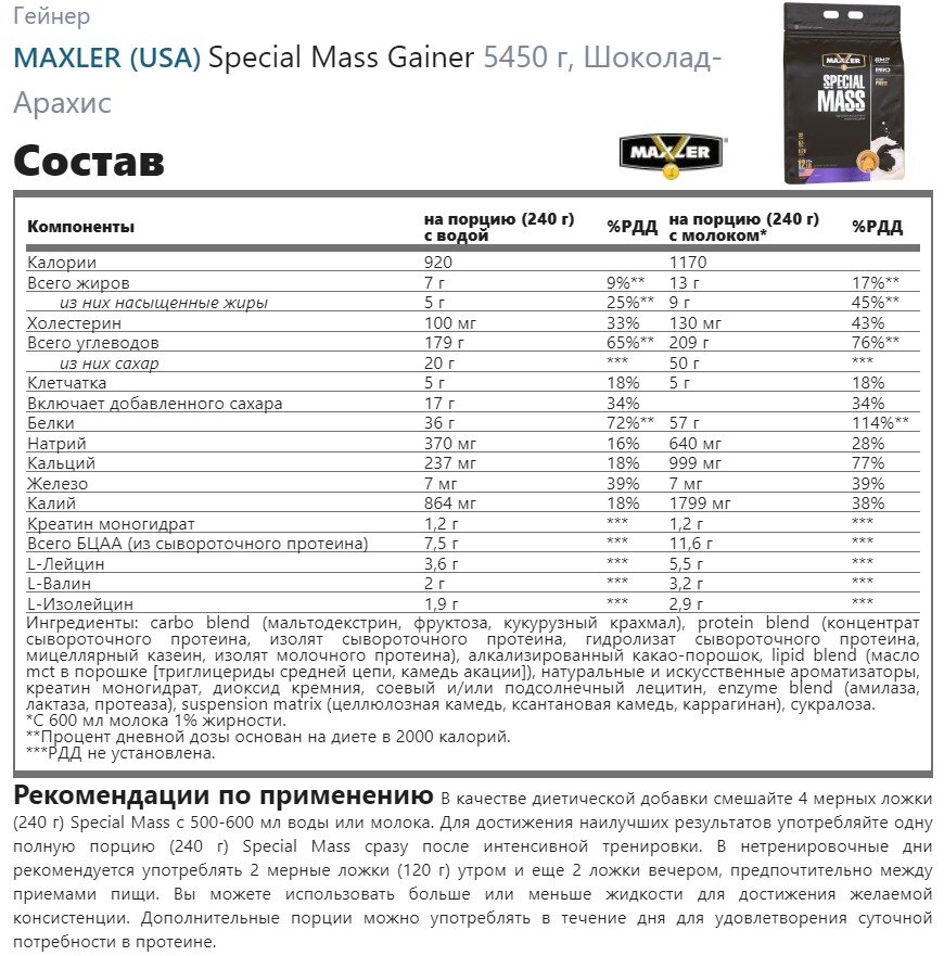 СохранитьSpecial Mass Gainer 5450 гр. 12lb (Maxler) Шоколадное арахисовое масло интересное: