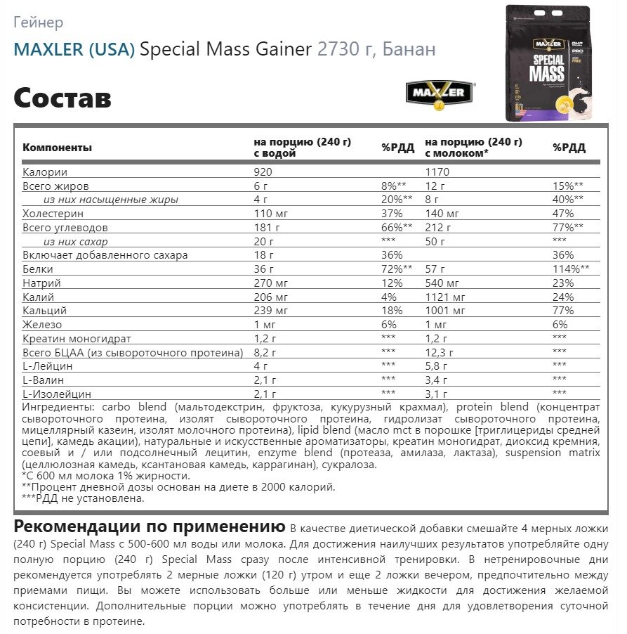 СохранитьSpecial Mass Gainer 2730 гр. 6lb (Maxler) Банан интересное: