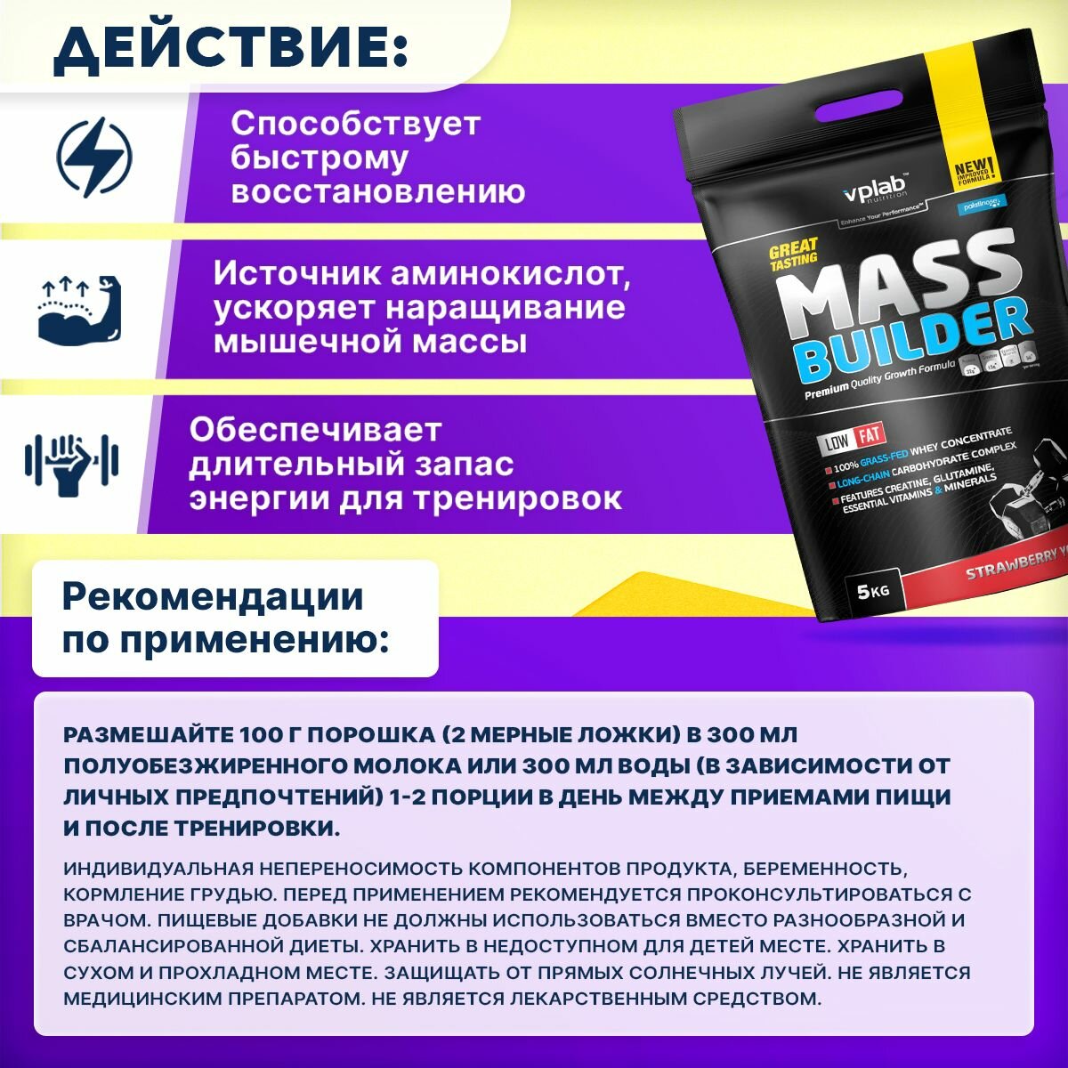 Купить VPLab Mass Builder 5 kg (Клубника)
