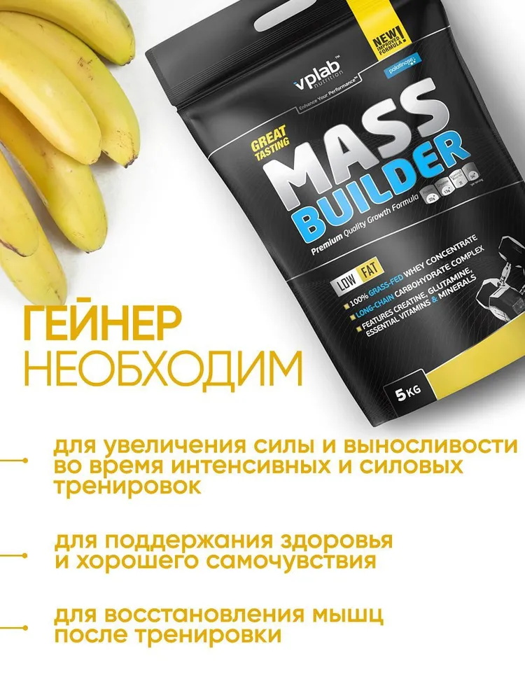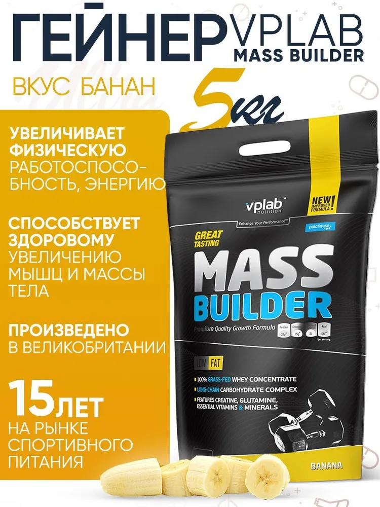 Купить Гейнер VPLab "Mass Builder", банан, 5 кг