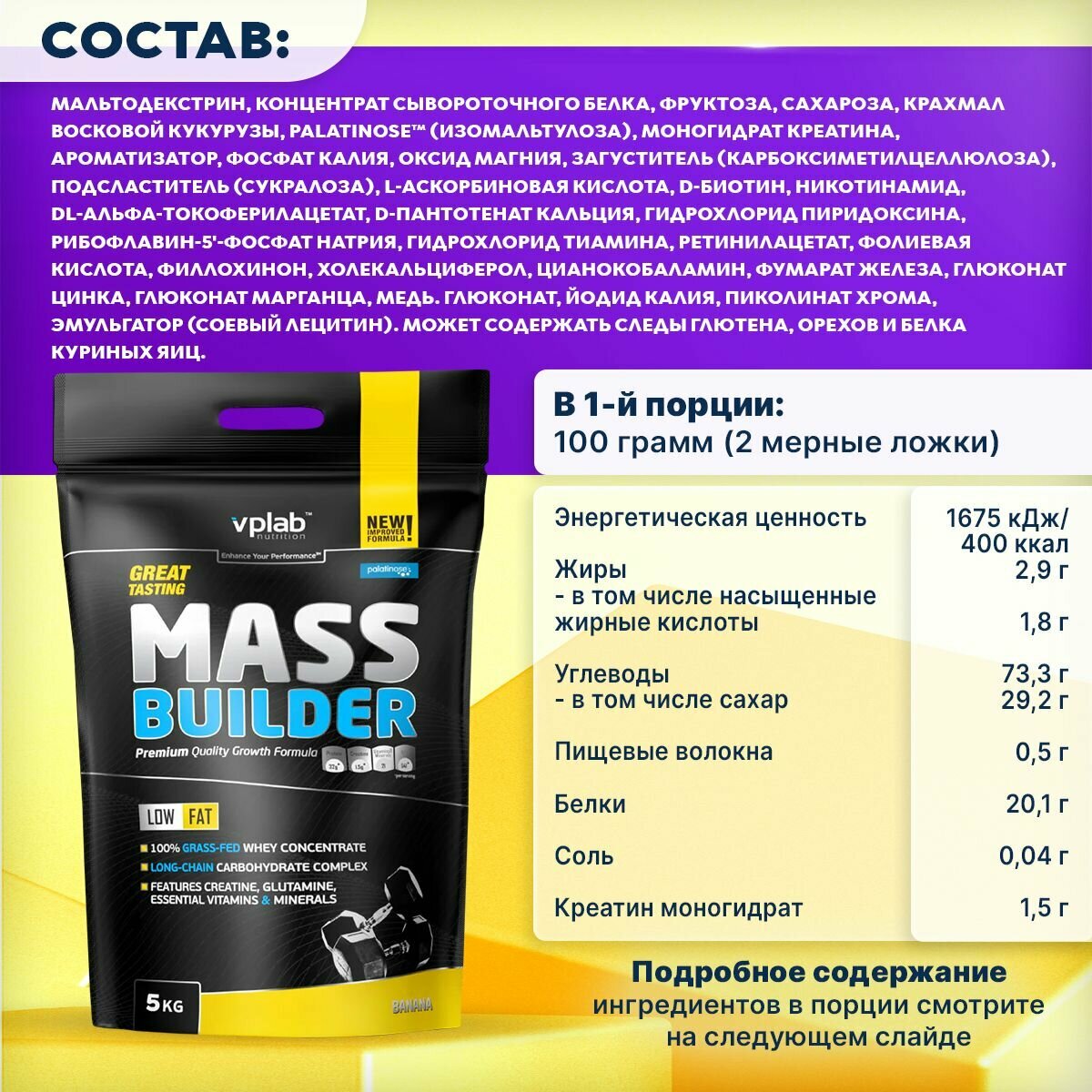 Гейнер vplab Mass Builder (5 кг), ваниль