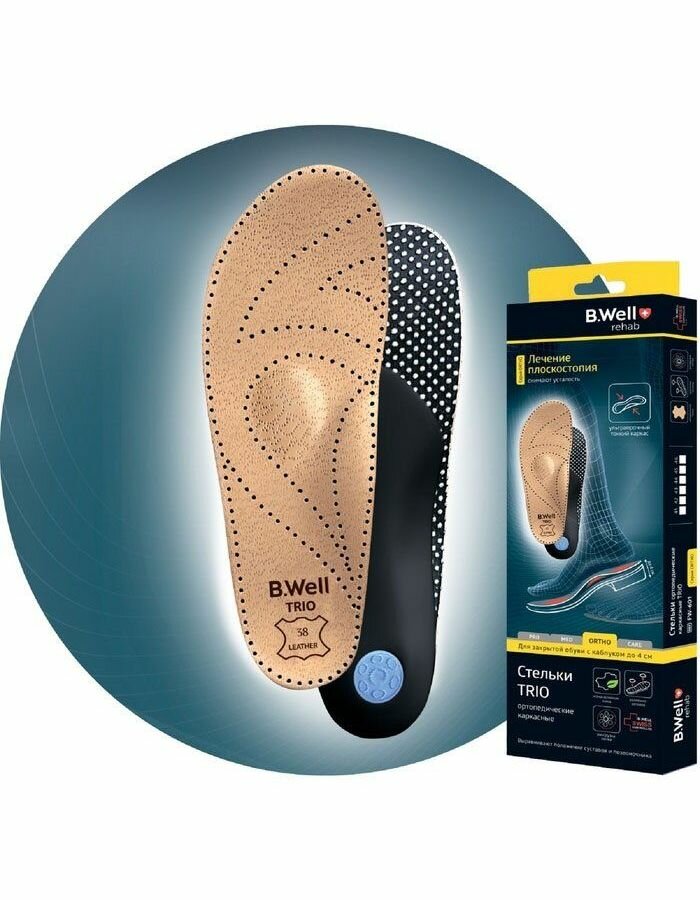 Стельки ортопедические B.well rehab TRIO FW-601, каркасные, кожа, размер 36