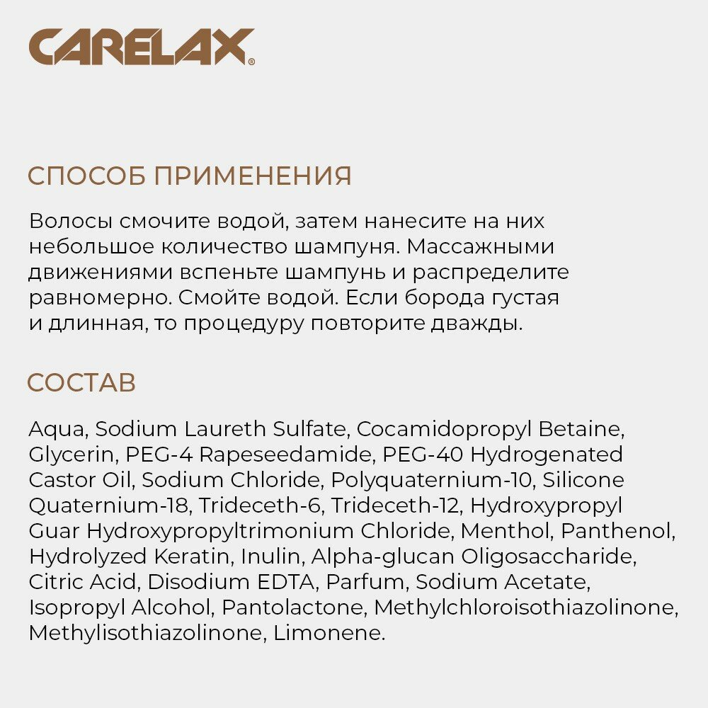 Шампунь для укладки бороды и усов Carelax Barber line, 145 мл Carelax 4420014 .