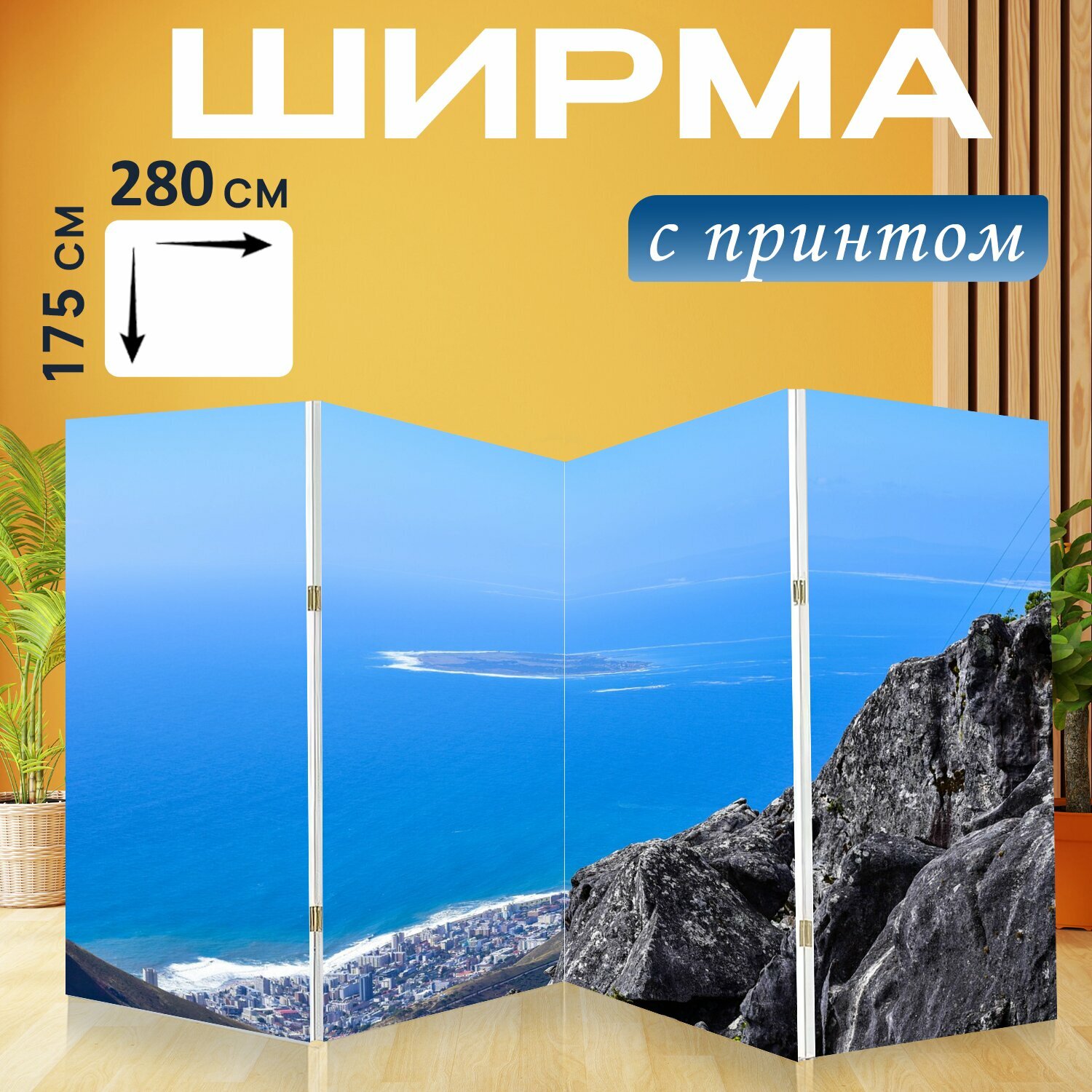 Ширма "Антенна из столовой горы, южная африка, кейптаун" перегородка для зонирования комнаты с принтом 280x175 см. на холсте интересное:
