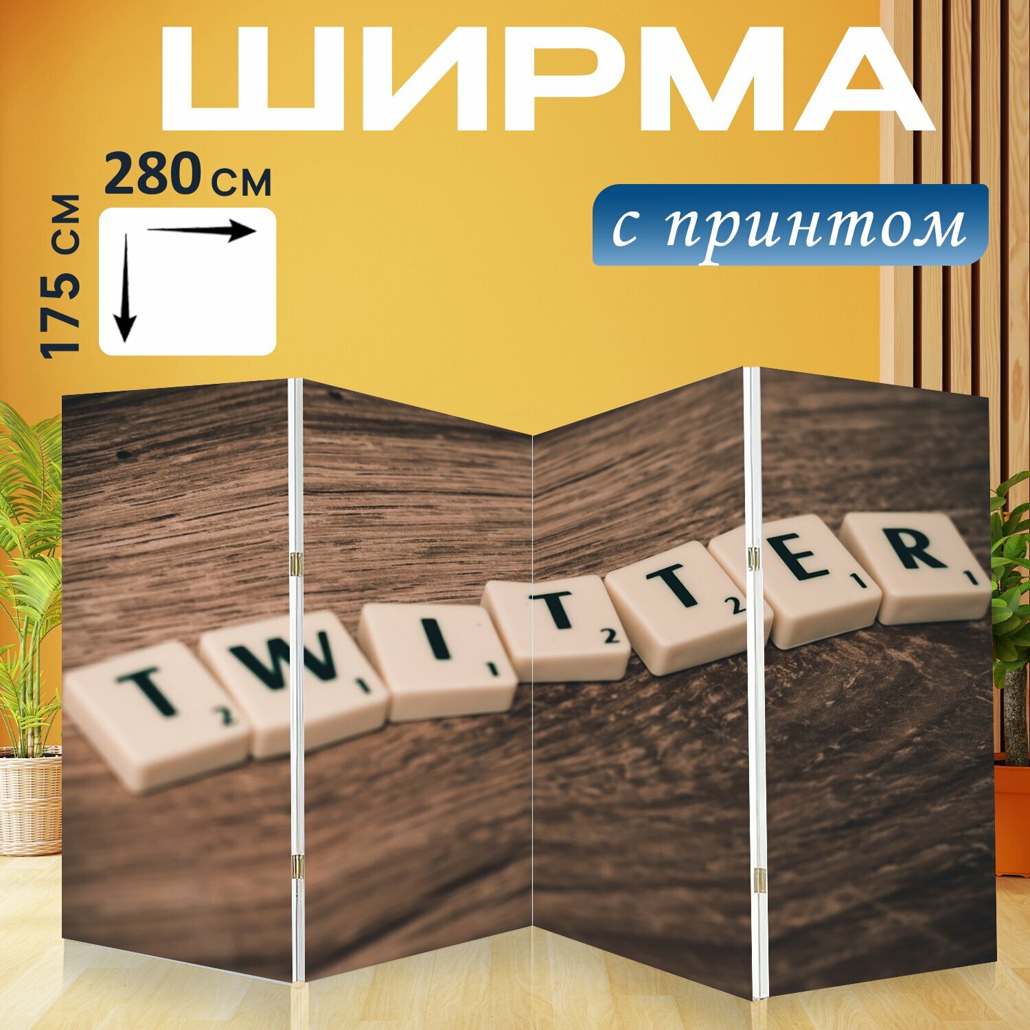 Ширма "Твиттер, социальные медиа, сми" перегородка для зонирования комнаты с принтом 280x175 см. на холсте интересное: