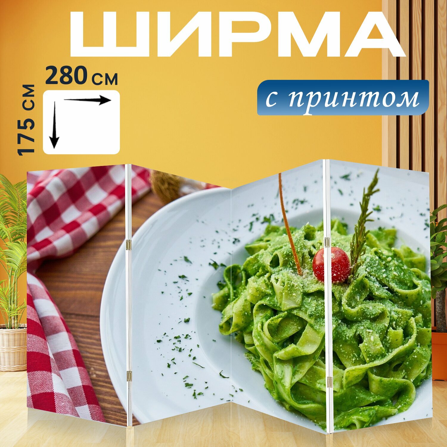 Ширма "Макароны, тарелка, выпечка" перегородка для зонирования комнаты с принтом 280x175 см. на холсте интересное: