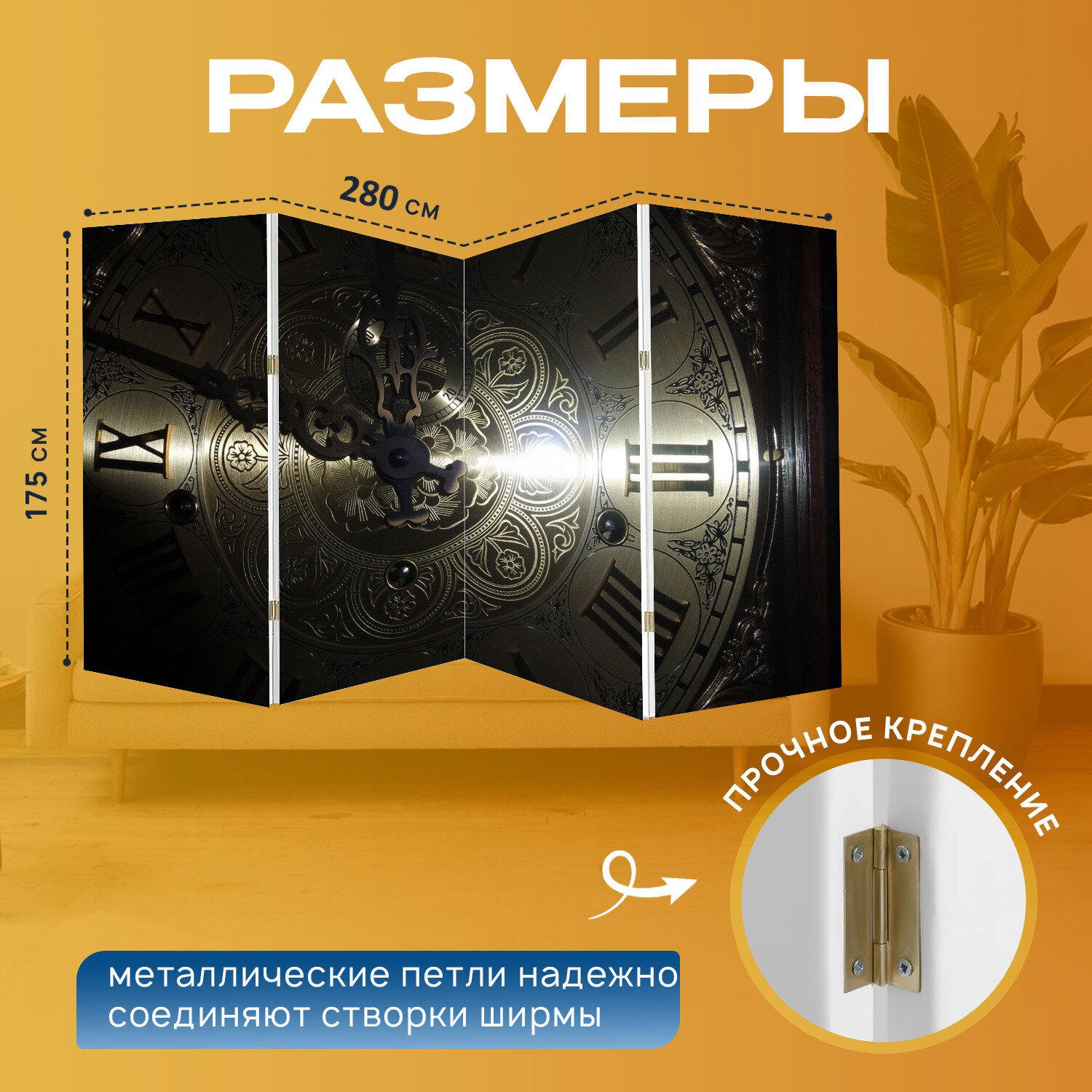 Ширма "Циферблата часов, дедушка, часы" перегородка для зонирования комнаты с принтом 280x175 см. на холсте интересное: