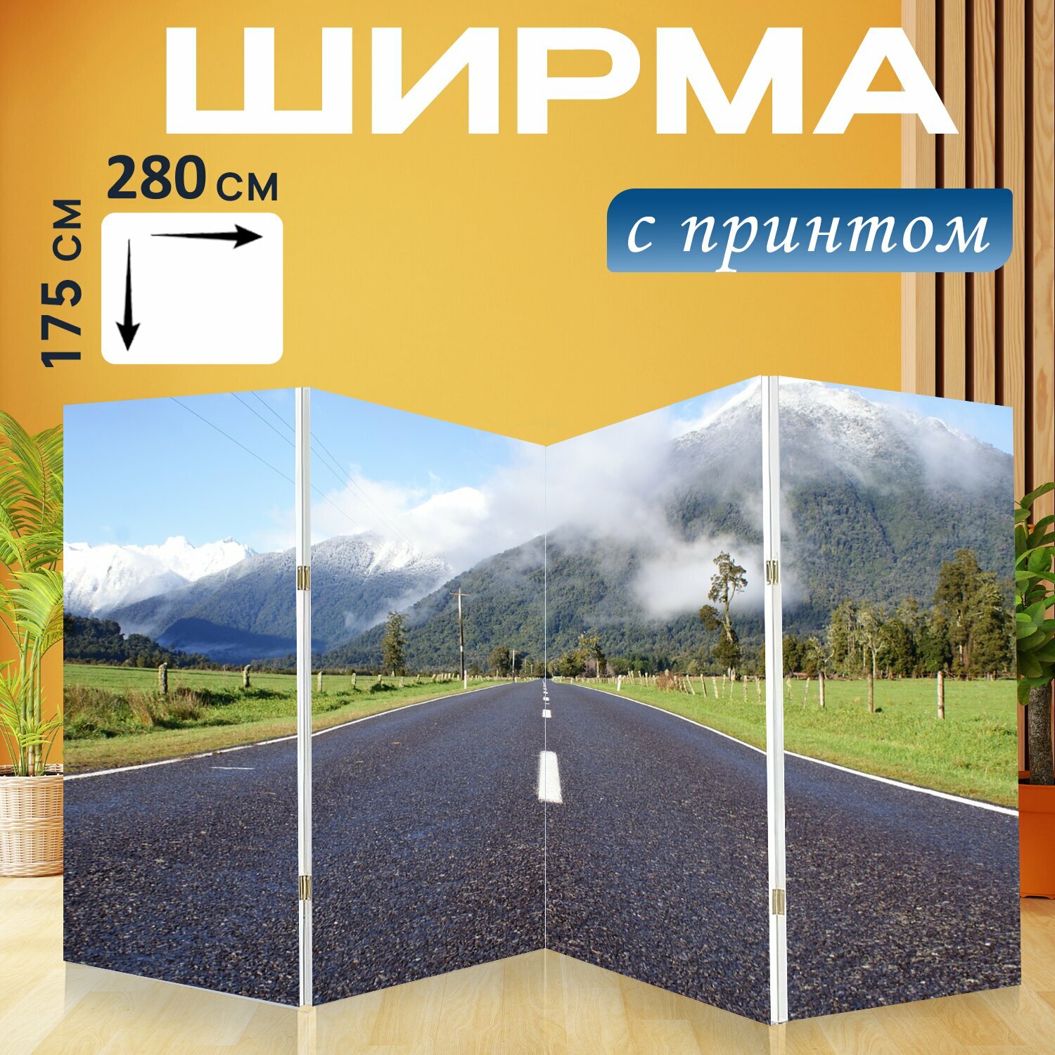 Ширма "Шоссе, асфальт, природа" перегородка для зонирования комнаты с принтом 280x175 см. на холсте интересное: