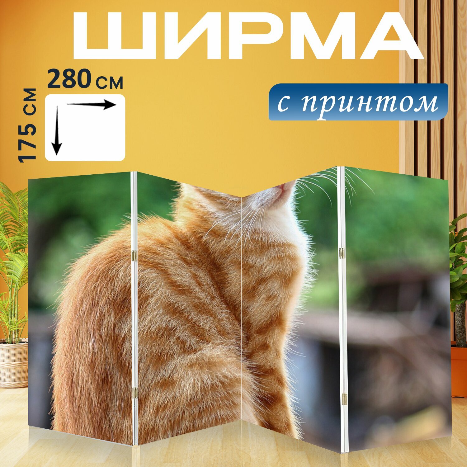Ширма "Кошка, котенок, полосатый" перегородка для зонирования комнаты с принтом 280x175 см. на холсте интересное: