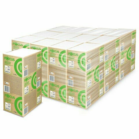 Купить Полотенца бумажные 250 шт. FOCUS (Система H2) Eco, 1-слойные, белые, комплект 12 пачек, 24х21,5, Z-сложение, 5083814/5069958