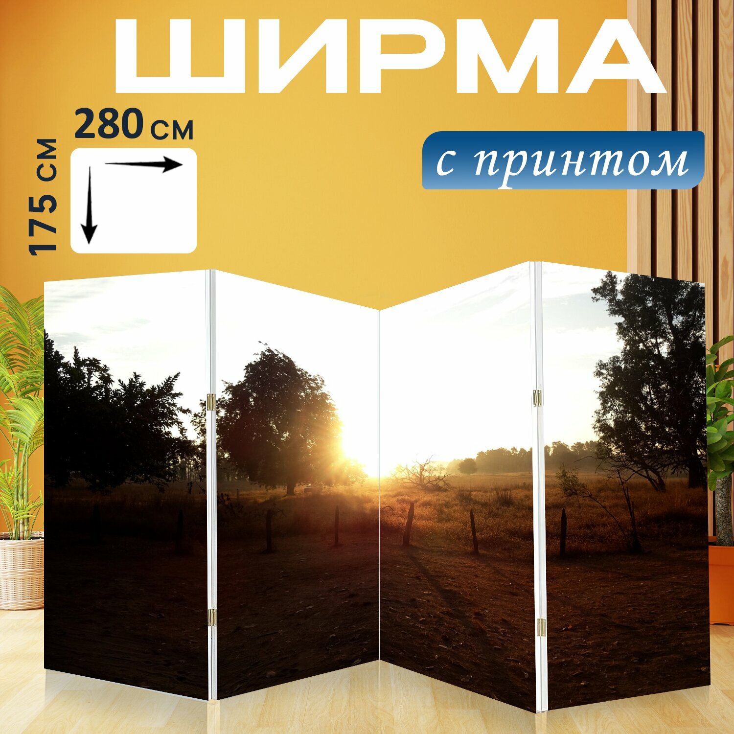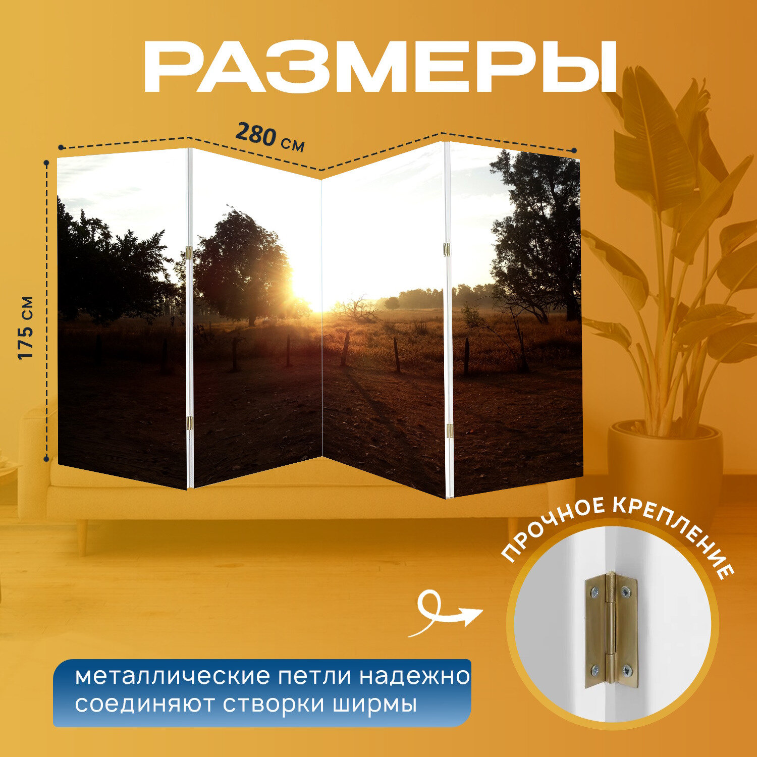 Ширма "Лес, дерево, солнце" перегородка для зонирования комнаты с принтом 280x175 см. на холсте интересное: