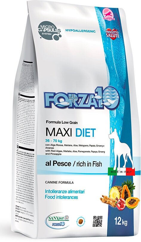 Сухой корм для собак Forza10 Diet Maxi при чувствительном пищеварении, гипоаллергенный, рыба 12 кг (для крупных пород)