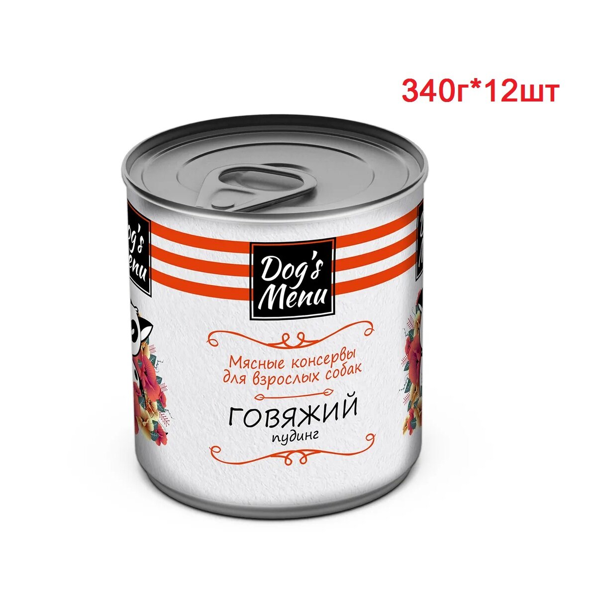 DOG’S MENU для взрослых собак говяжий пудинг (340 гр х 12 шт)
