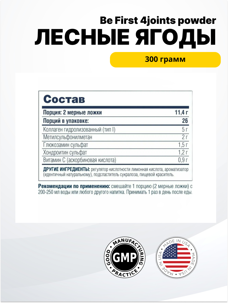 Be First 4joints Powder (300 г) (вкус: лесные ягоды) Glucosamine Chindroitin Msm Collagen
