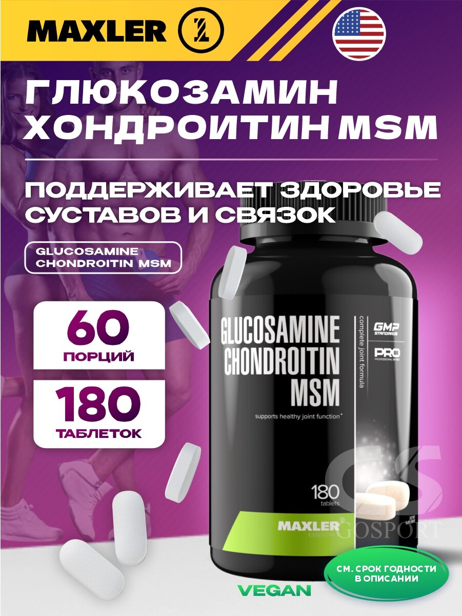 Maxler Препарат для укрепления связок и суставов Glucosamine Chondroitin MSM, 180 шт.