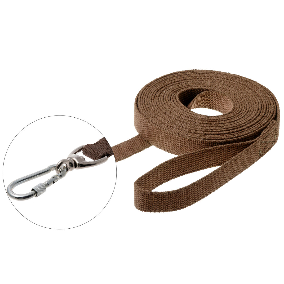 Брезентовый поводок для собак с монтажным карабином и вертлюгом, сшивной, 10 м (25мм)