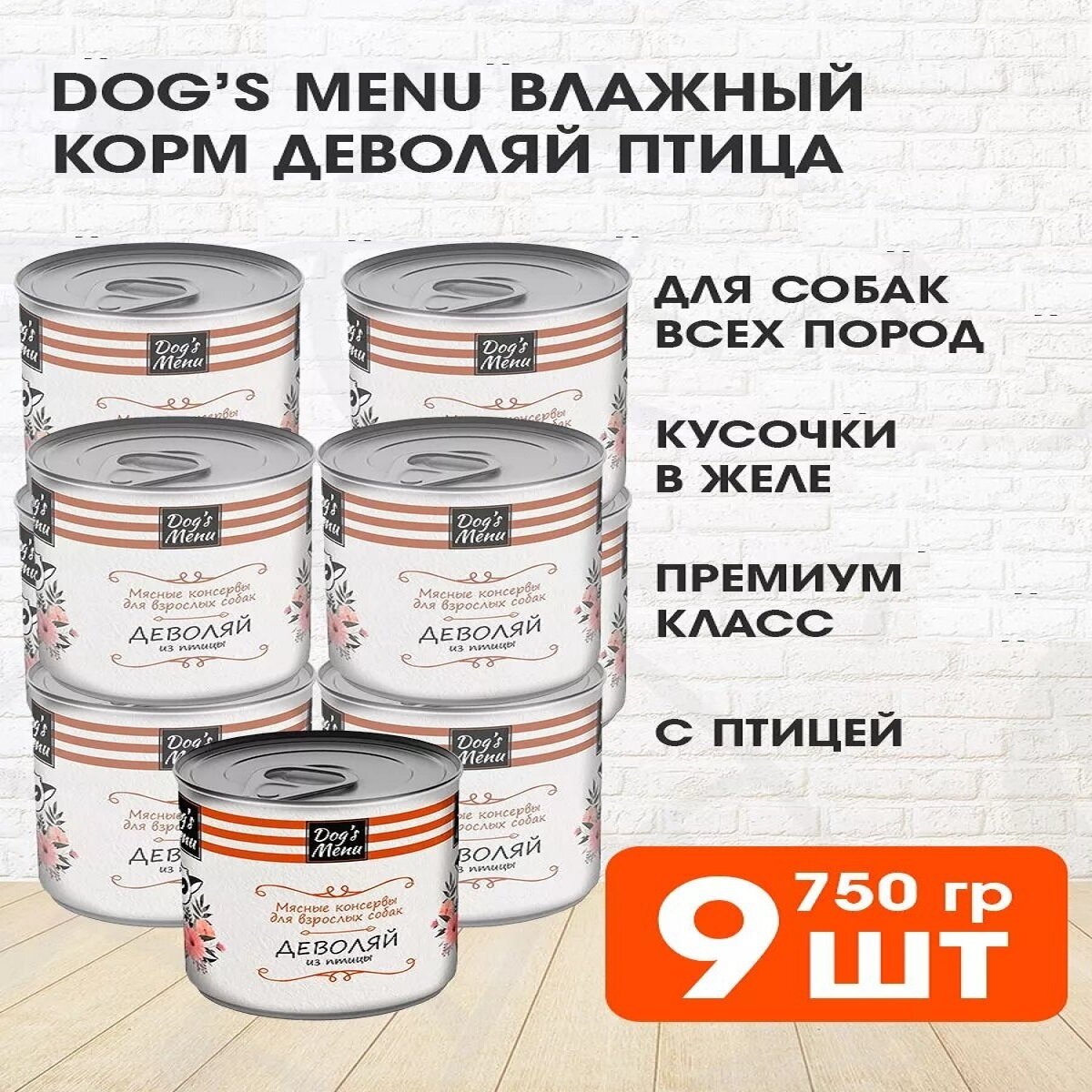Купить DOG’S MENU для взрослых собак деволяй из птицы (750 гр х 9 шт)