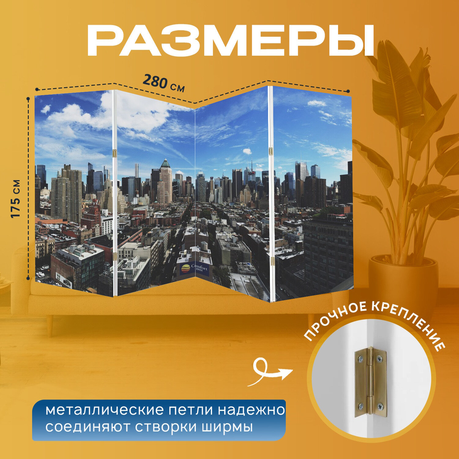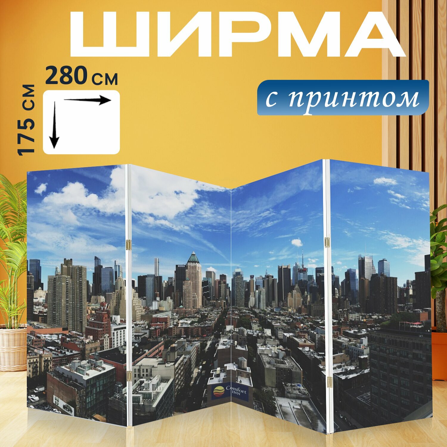 Ширма "Здания, город, панорамный" перегородка для зонирования комнаты с принтом 280x175 см. на холсте интересное: