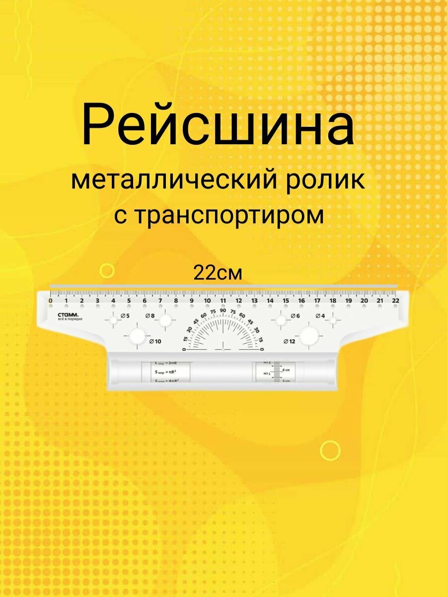 Рейсшина 22см СТАММ, металлический ролик, картонная коробка, 351484