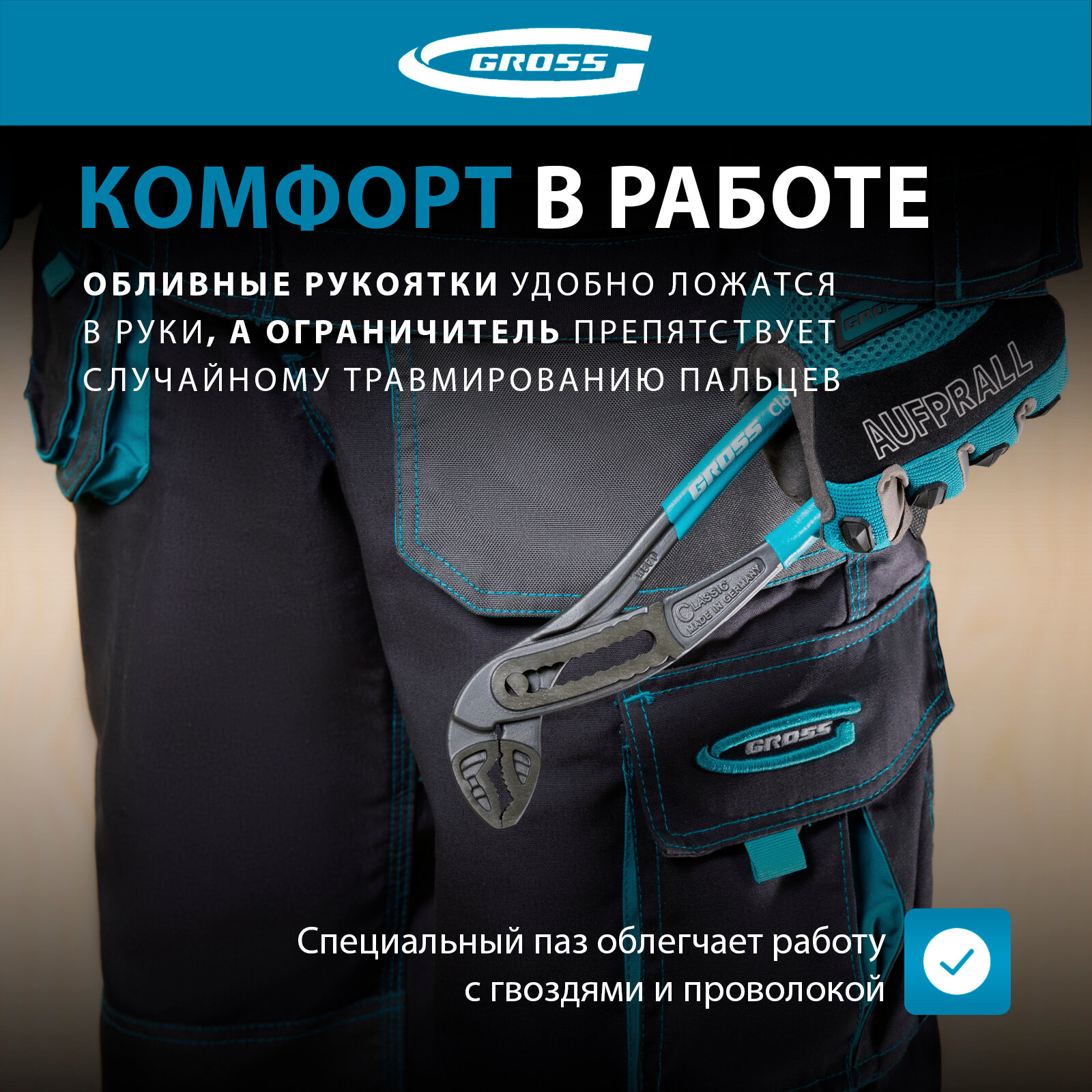 Клещи переставные Gross 15715, хром-ванадий, обливные рукоятки, 240 мм Gross 4359299 .