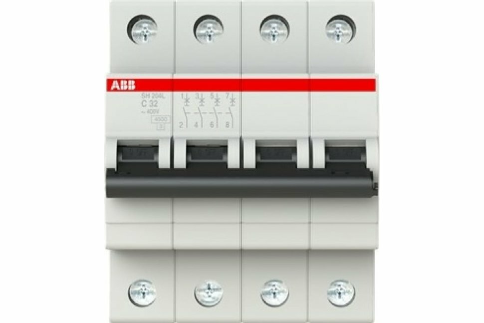 Автоматический выключатель ABB S204 C32 ампера, 4-полюсный, характеристика C(Оригинал)