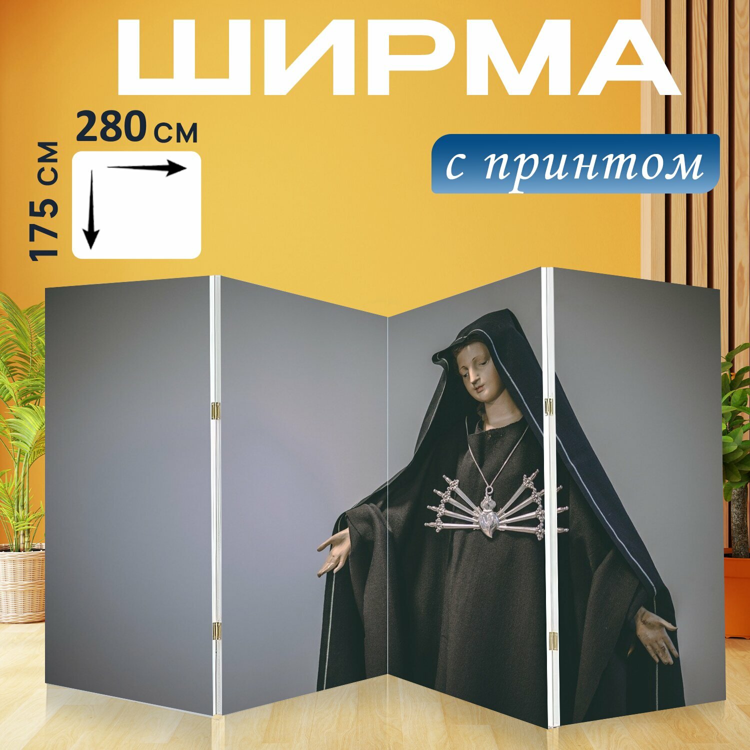 Ширма "Боль матери, мадонна, семь боль" перегородка для зонирования комнаты с принтом 280x175 см. на холсте интересное: