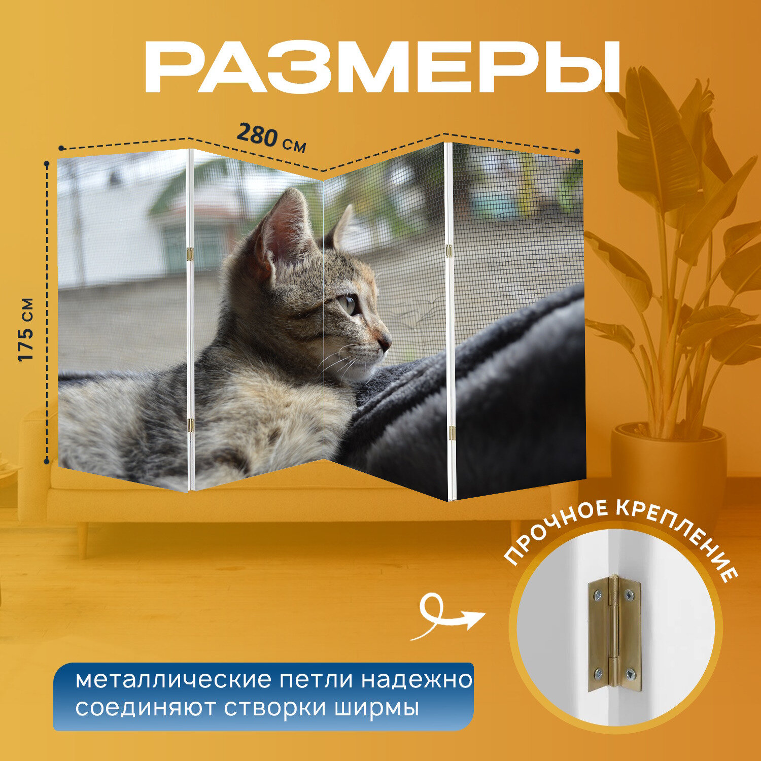 Ширма "Кошка, котенок, домашний питомец" перегородка для зонирования комнаты с принтом 280x175 см. на холсте интересное: