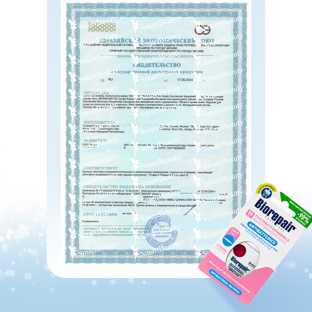 Зубная нить Biorepair вощеная скользящая, 50 метров