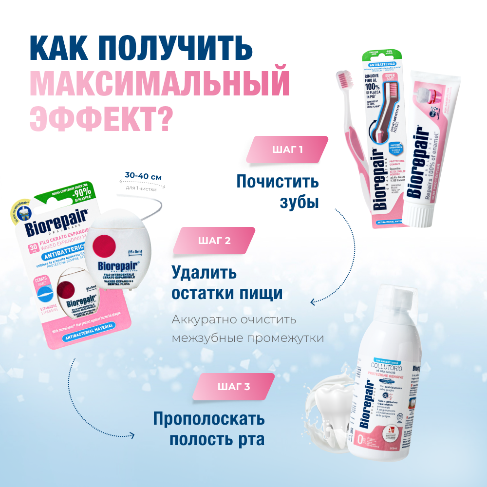 СохранитьЗубная нить Biorepair вощеная расширяющаяся для чувствительных десен, 30 метров интересное: