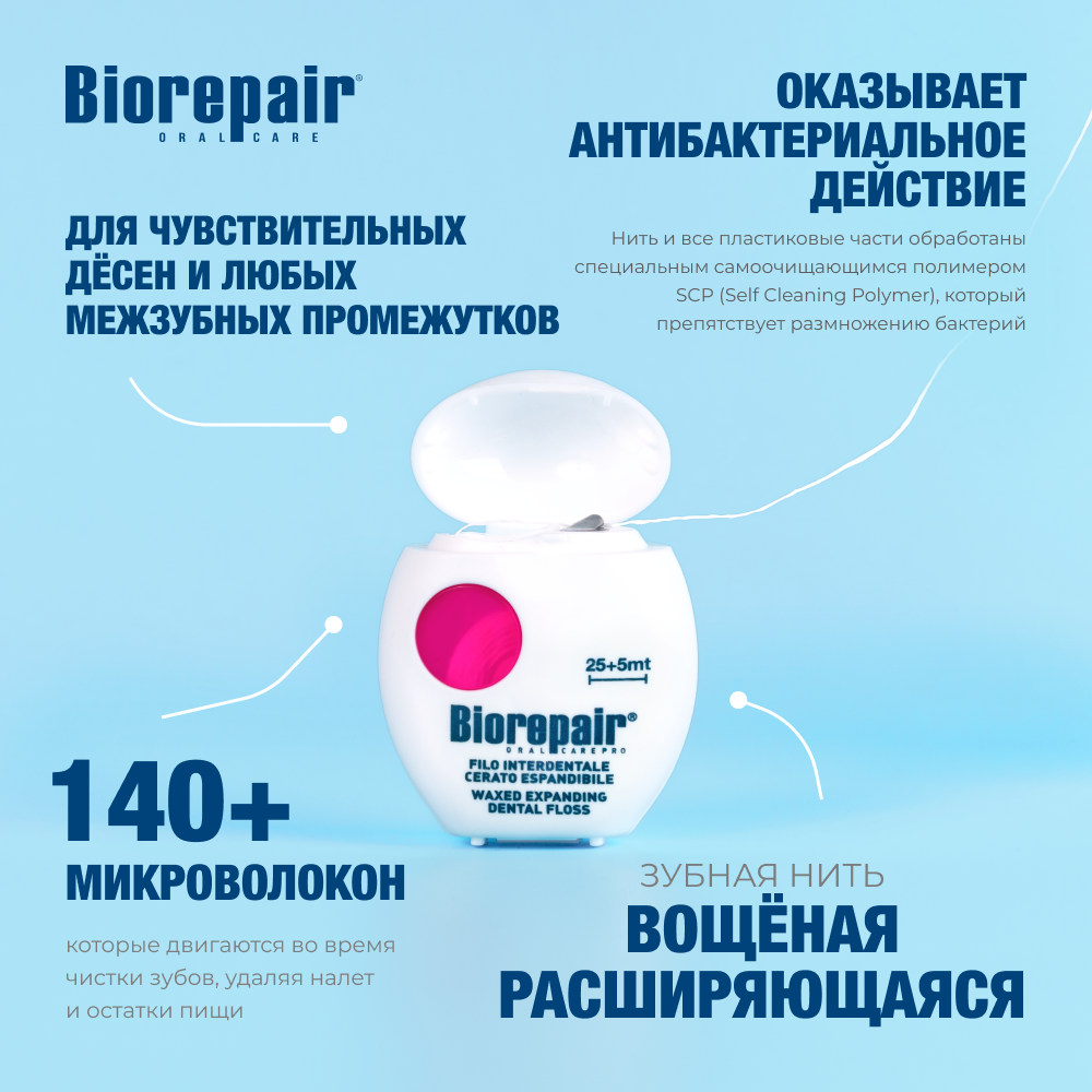 Купить Зубная нить Biorepair вощеная расширяющаяся для чувствительных десен, 30 метров