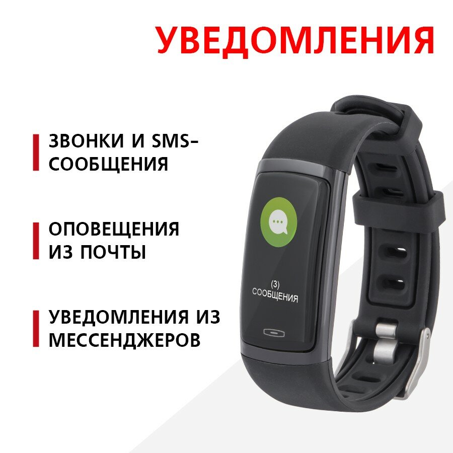 Фитнес-браслет Red Line RF-01, 0.96", IP68, пульсометр, датчик уровня кислорода, черный