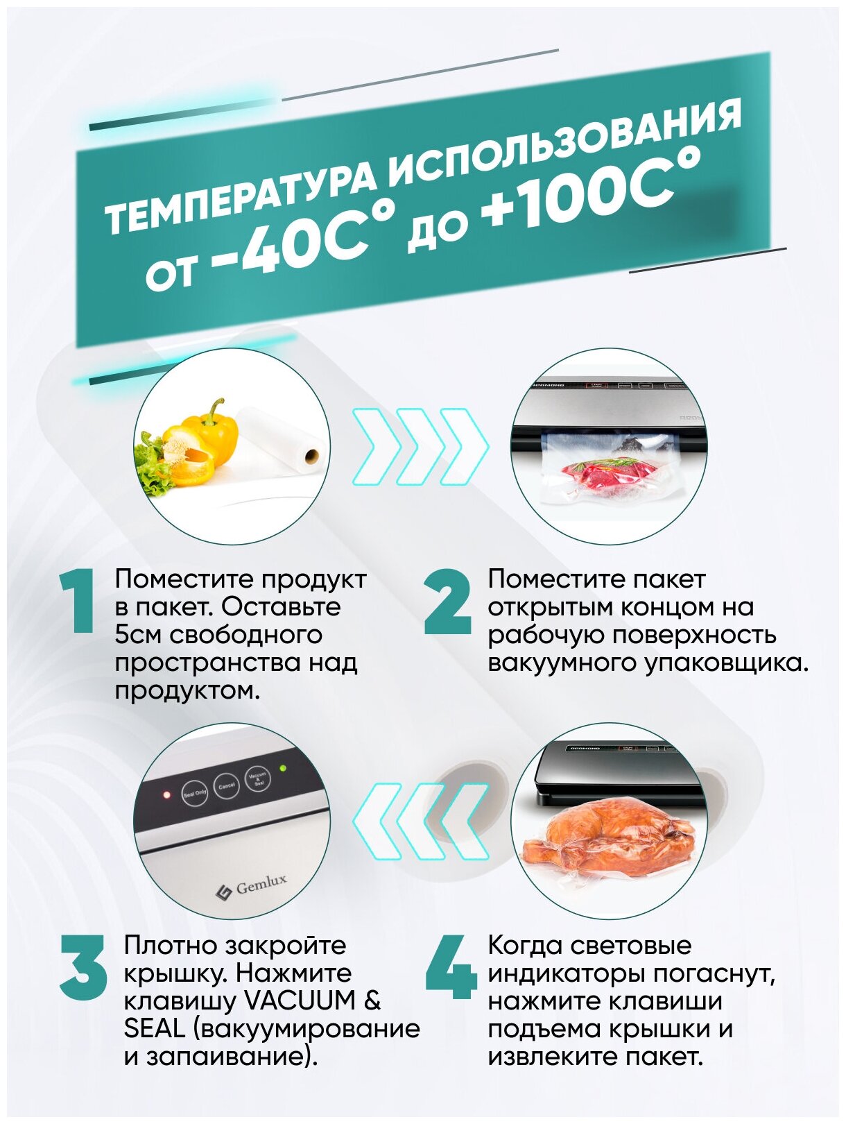 Пакеты для вакууматора рифленые в рулоне GEMLUX GL-VB30600-2R, фасовочный рукав для вакууматора, длина 6 м интересное: