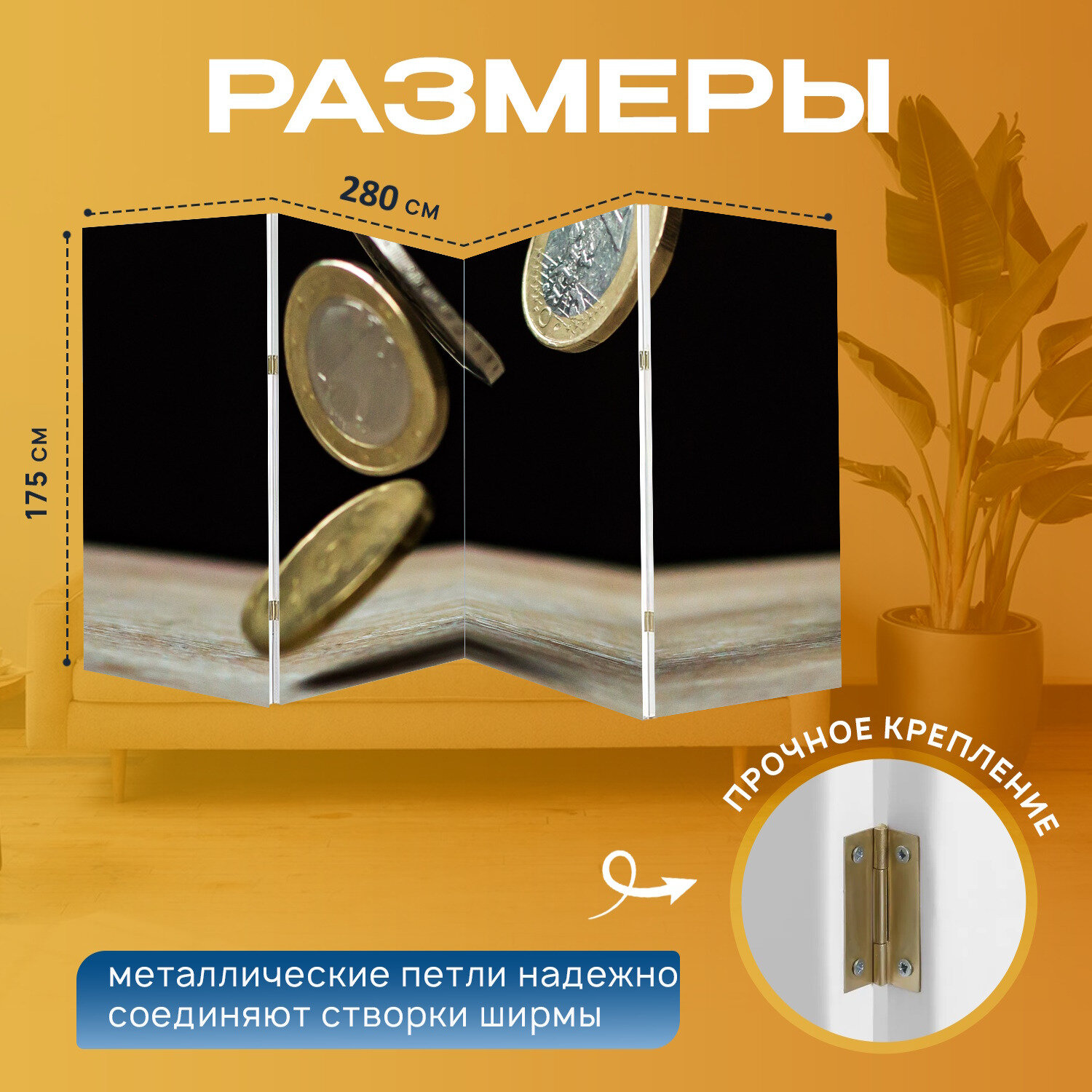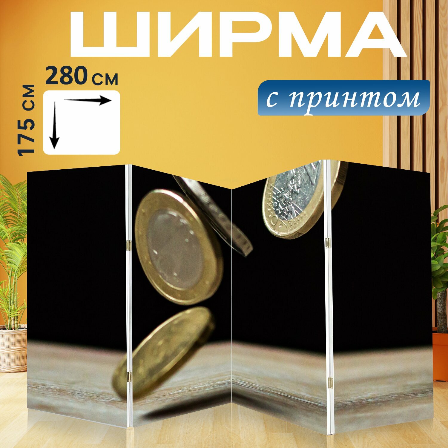 Ширма "Евро, осень, деньги" перегородка для зонирования комнаты с принтом 280x175 см. на холсте интересное:
