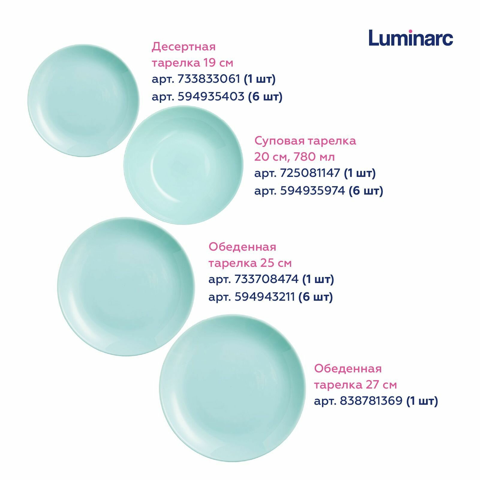 Тарелки Luminarc карин тюркуаз 6 шт / тарелка обеденная 27 см / тарелки набор / люминарк посуда наборы