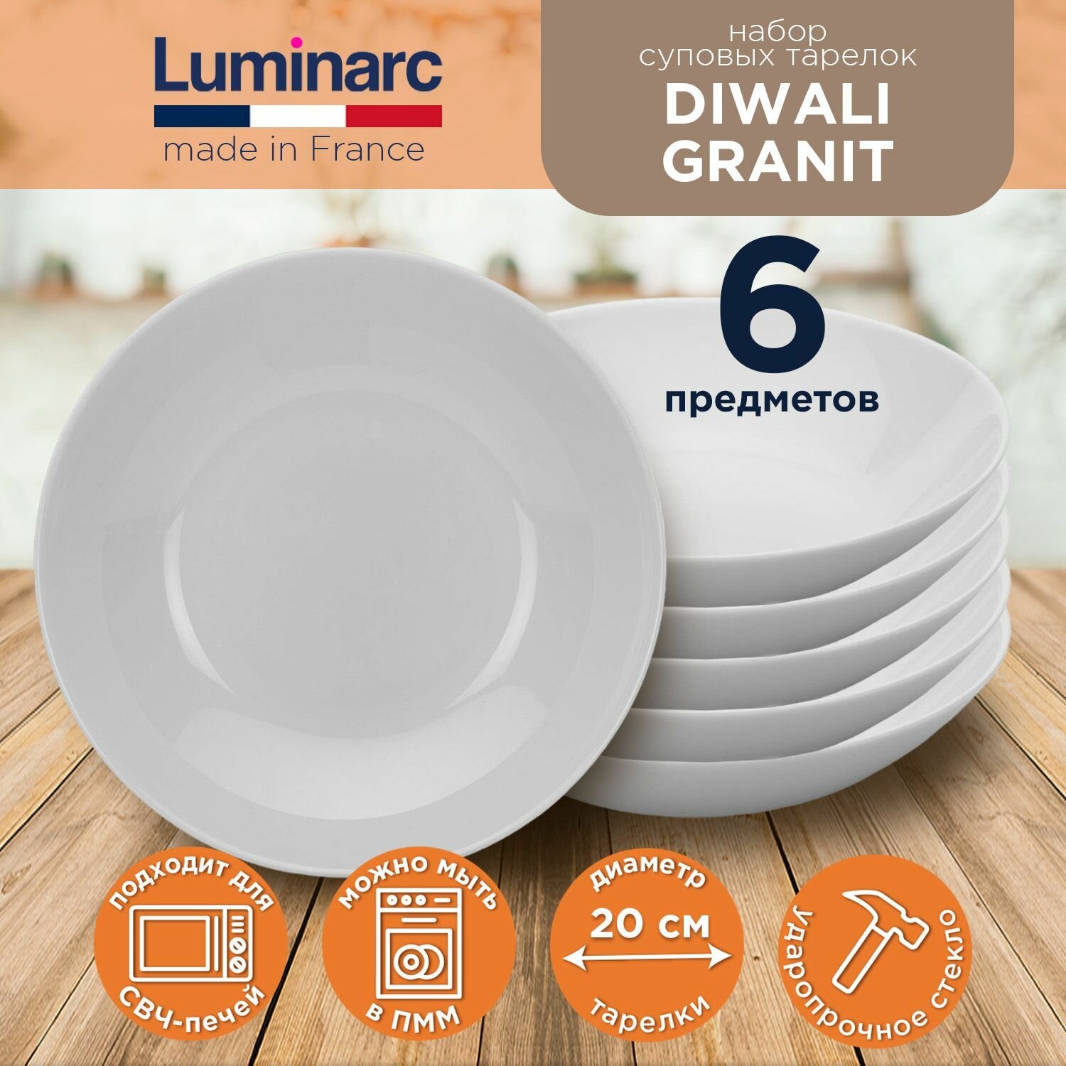 Тарелки суповые Luminarc Diwali Granit глубокие 20 см, 780 мл, 6 шт
