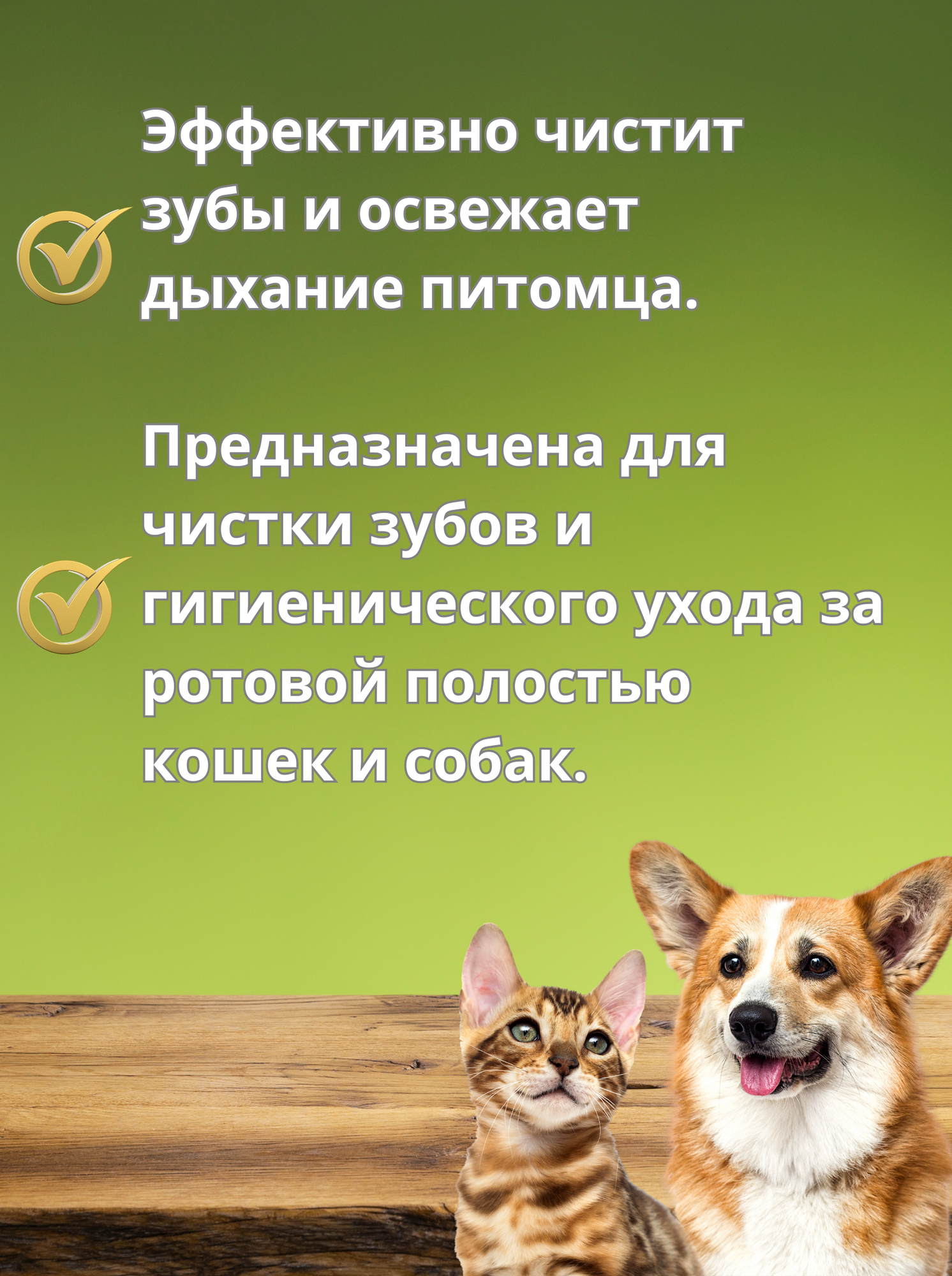 | Плюсы: | Собаке нравится, спокойно терпит чистку зубов |
