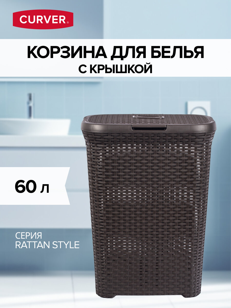 Корзина для белья CURVER RATTAN STYLE 60л темно-коричневая