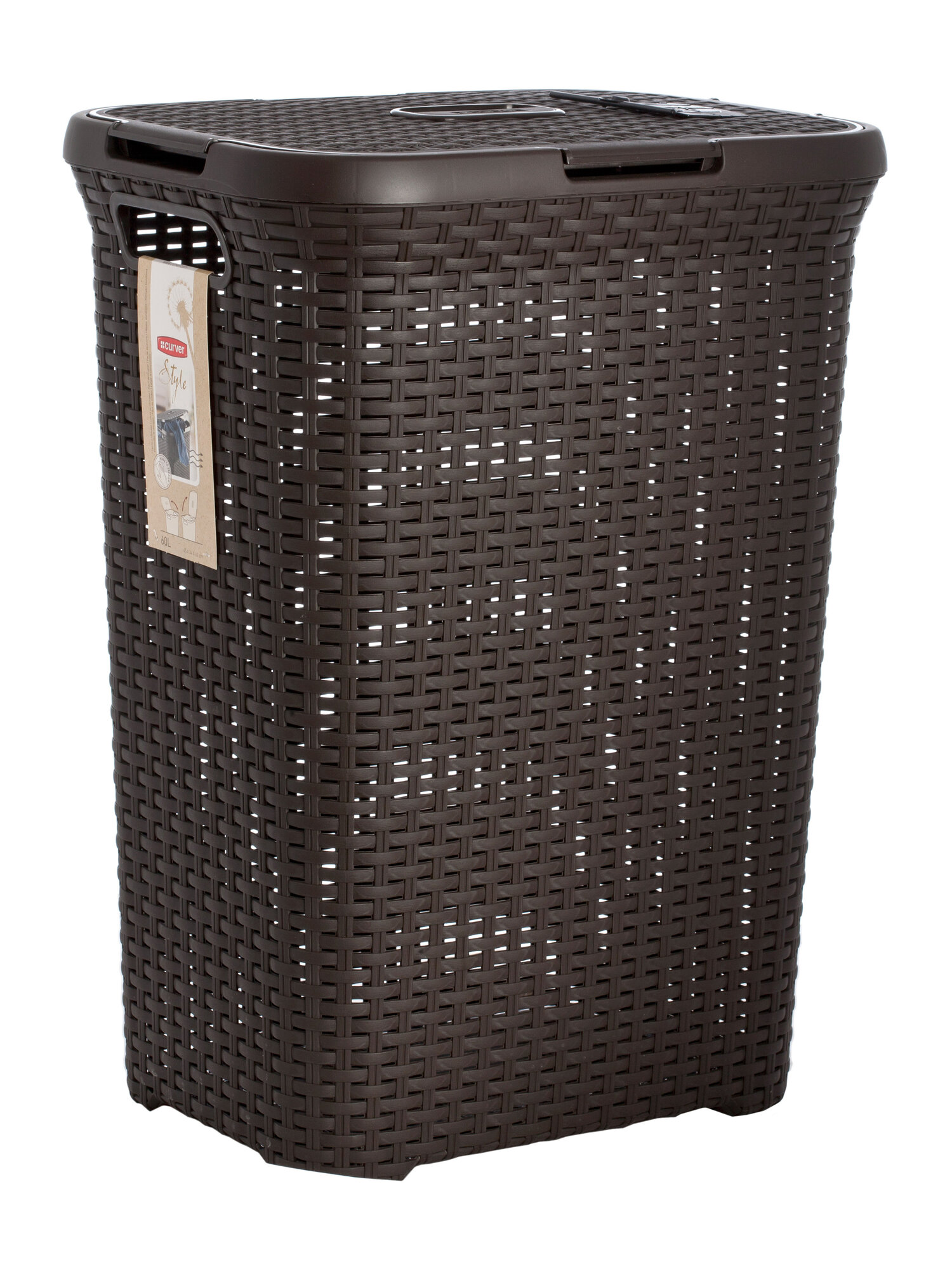Купить Корзина для белья с откидной крышкой, с ручками, 60 л, CURVER RATTAN STYLE, пластик, цвет темно-коричневый