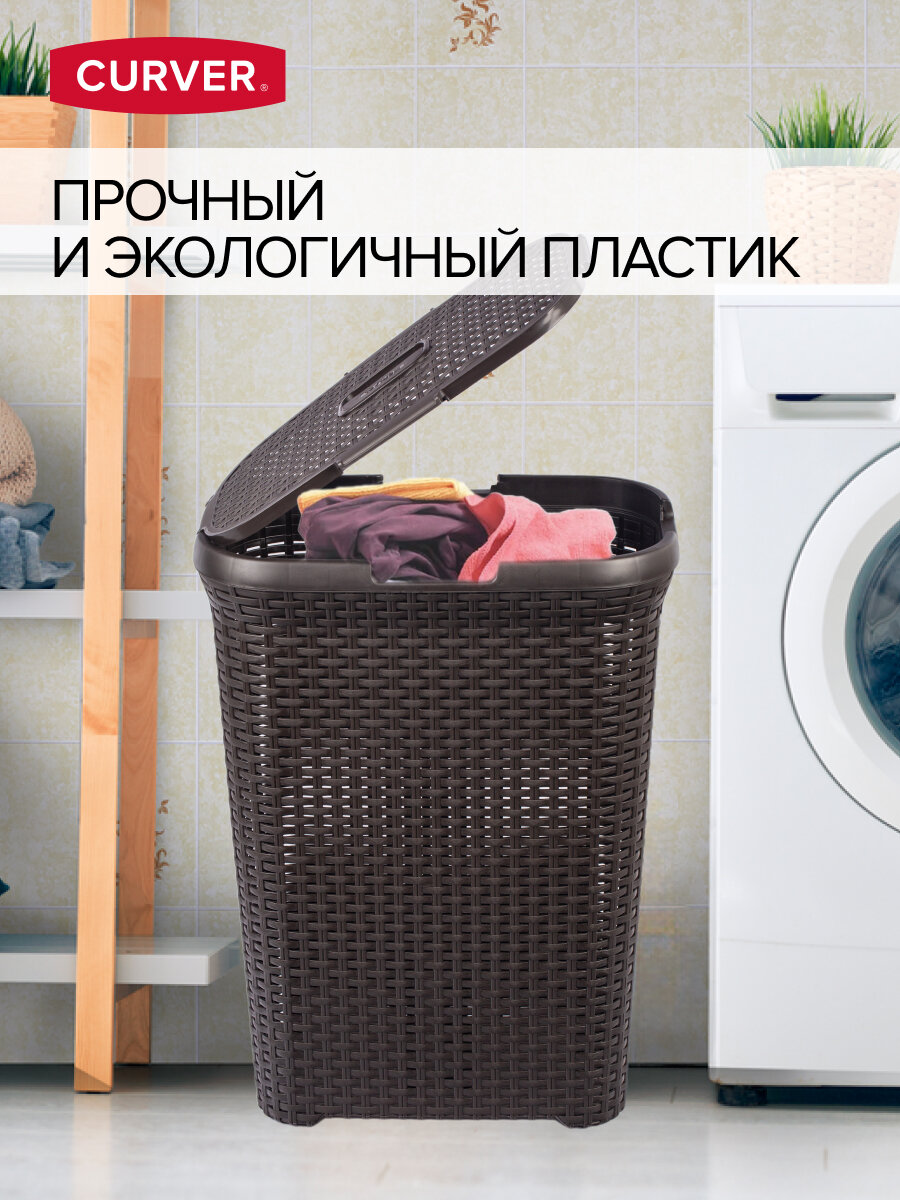 СохранитьКорзина для белья с откидной крышкой, с ручками, 60 л, CURVER RATTAN STYLE, пластик, цвет темно-коричневый интересное:
