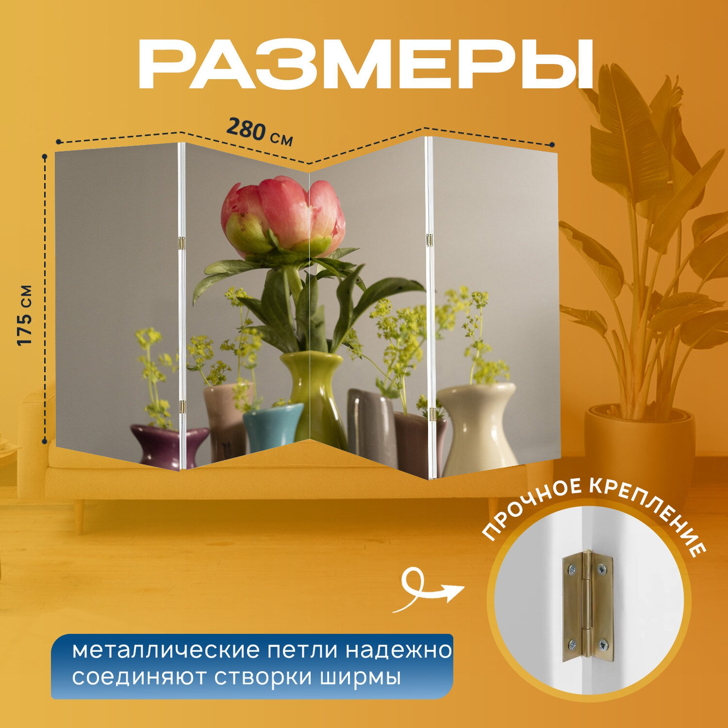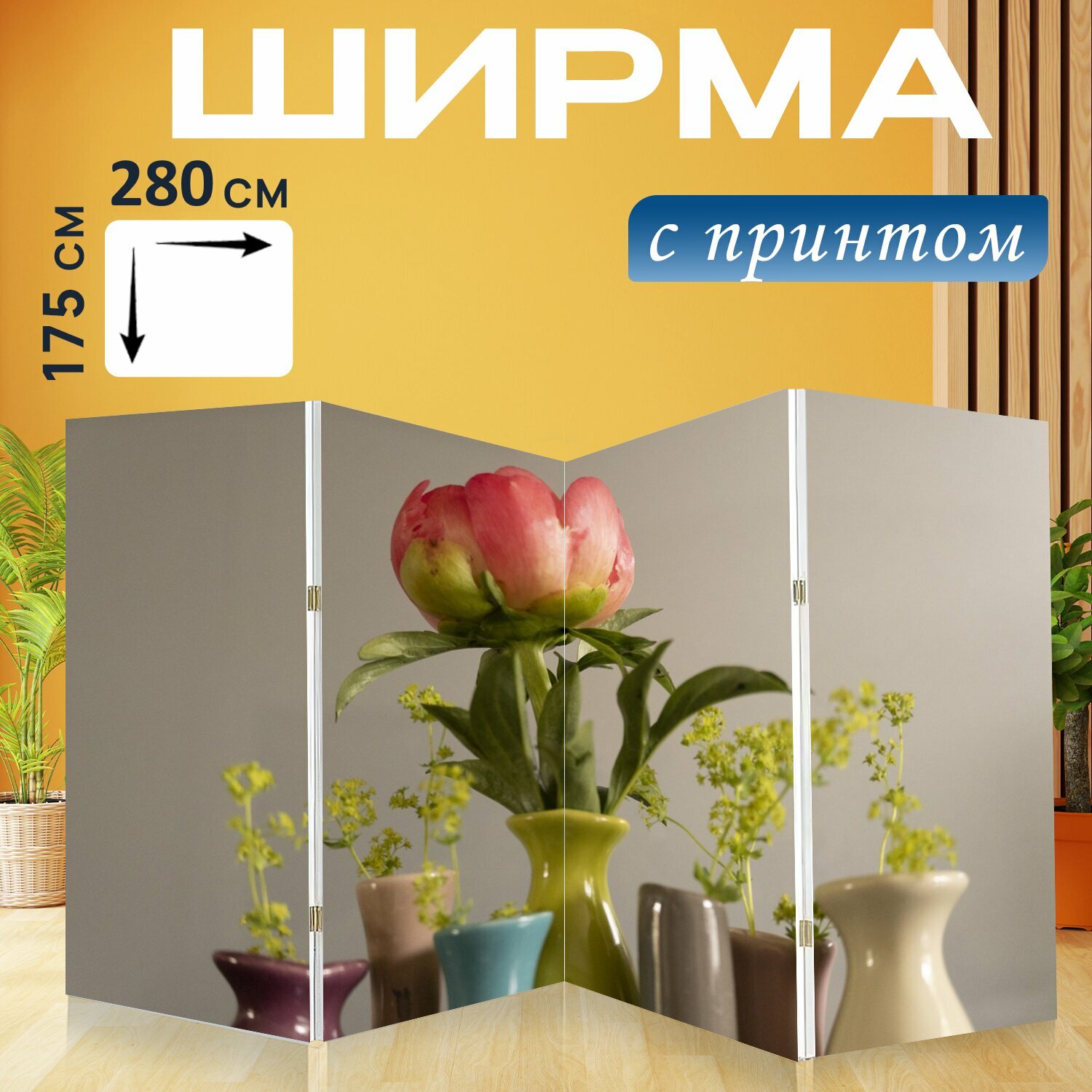 Ширма "Пион, бутон, цвести" перегородка для зонирования комнаты с принтом 280x175 см. на холсте интересное: