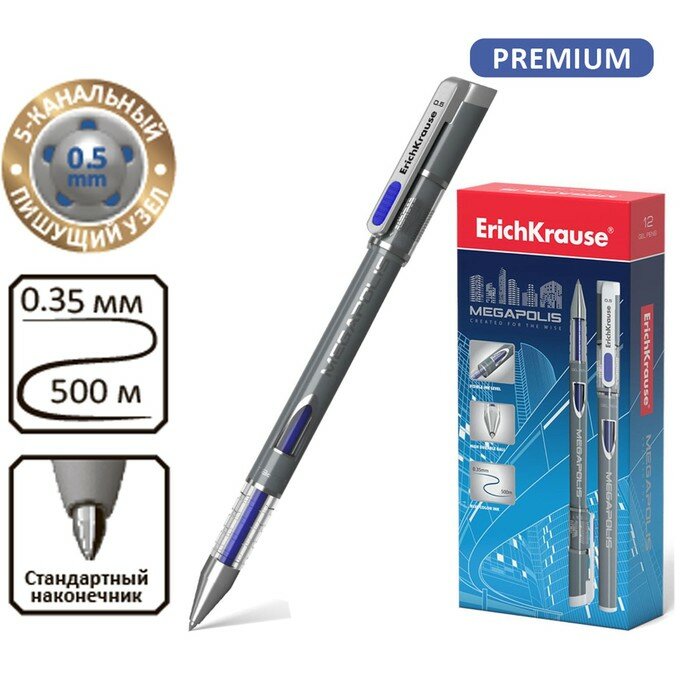 Ручка гелевая ERICH KRAUSE Megapolis Gel 0,5 мм, синяя, 12штук