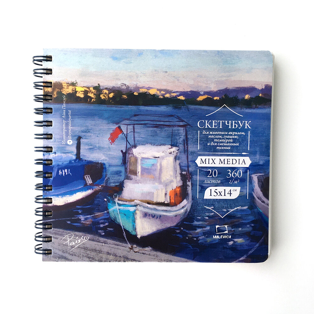 СохранитьСкетчбук Малевичъ MIX MEDIA для акрила, гуаши и смешанных техник, 360 г/м, 15х14 см, 20л интересное: