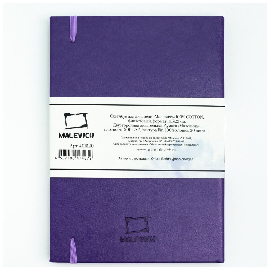 СохранитьСкетчбук для акварели Малевичъ, 100% хлопок, фиолетовый, 200 г/м², 14,5х21 см, 30л, 401520 интересное: