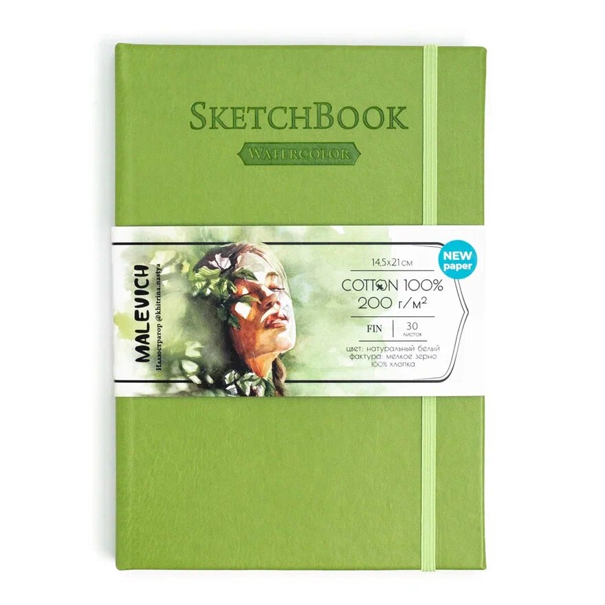 Купить Скетчбук для акварели Малевичъ, 100% хлопок, салатовый, 200 г/м, 14,5х21 см, 30л