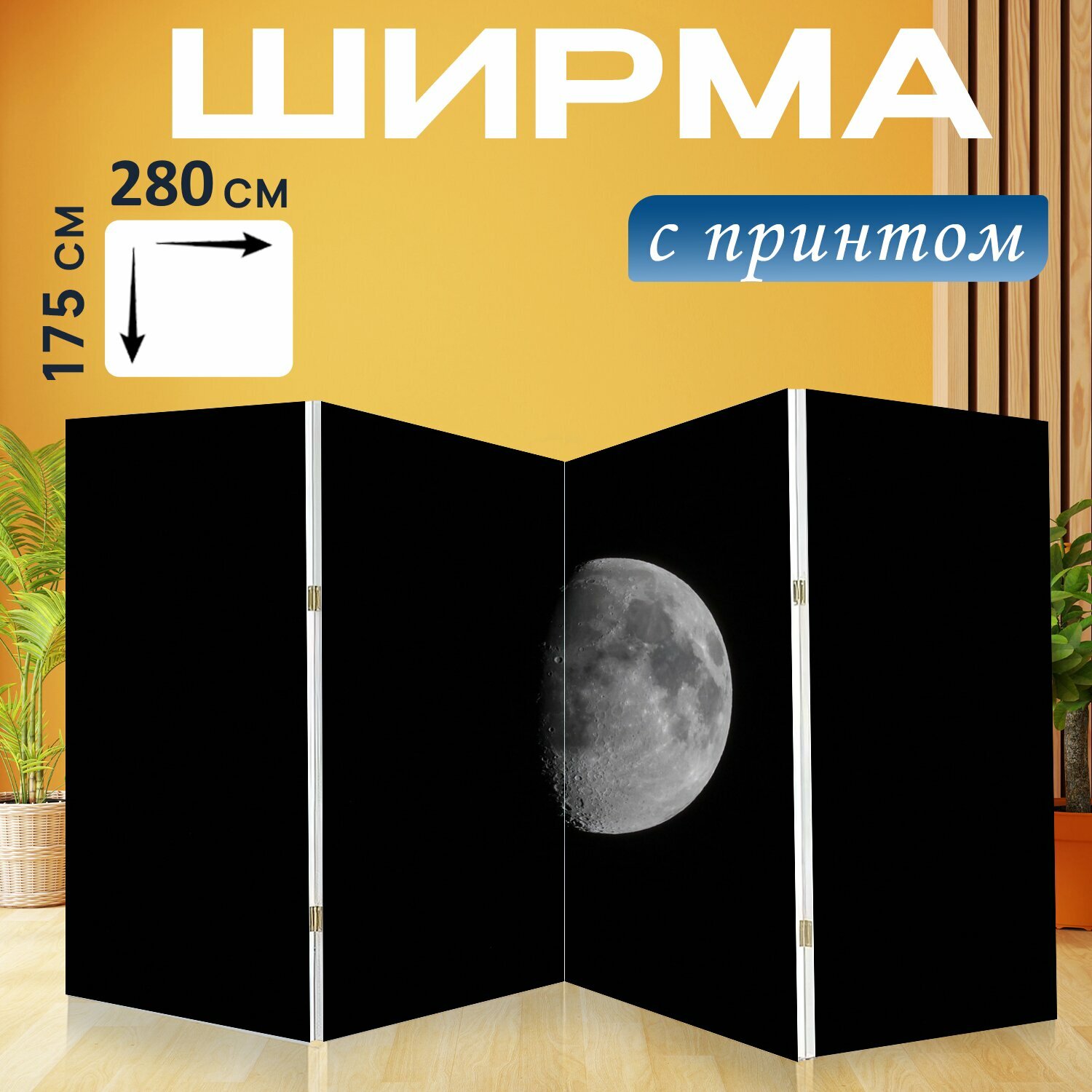 Ширма "Луна, небо, ночь" перегородка для зонирования комнаты с принтом 280x175 см. на холсте интересное:
