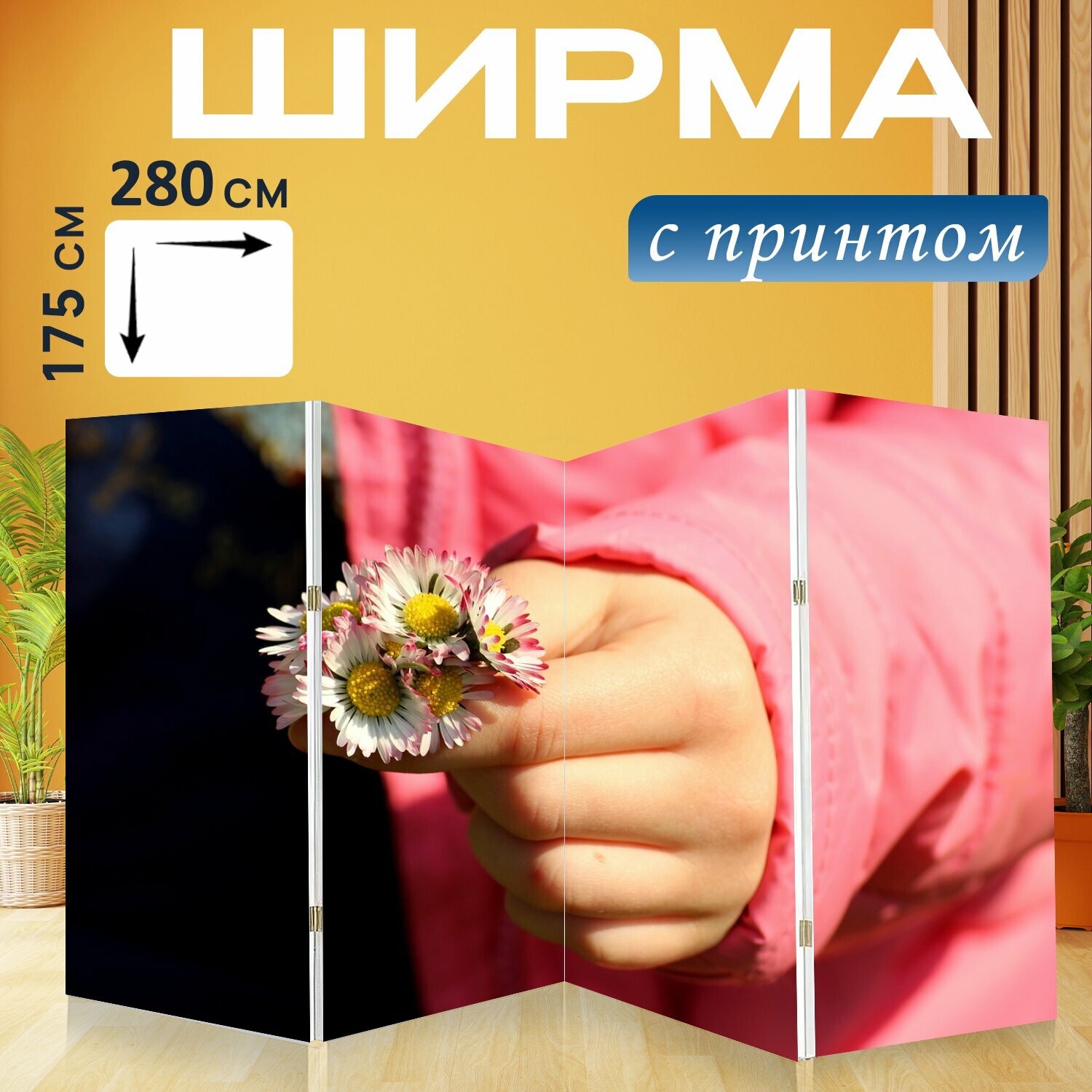 Ширма "Ромашки, весна, взял" перегородка для зонирования комнаты с принтом 280x175 см. на холсте интересное: