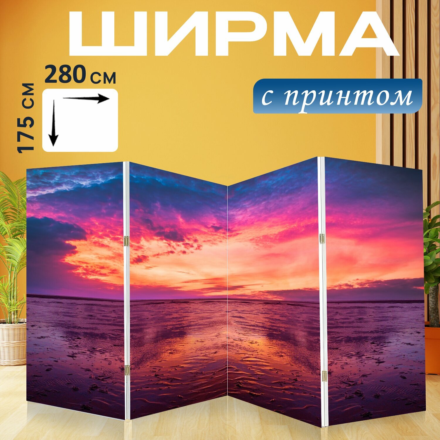 Ширма "Пейзаж, море, природа" перегородка для зонирования комнаты с принтом 280x175 см. на холсте интересное: