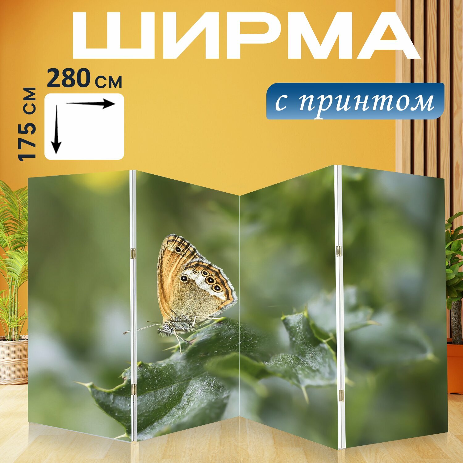 Ширма "Бабочка, насекомое, бабочки" перегородка для зонирования комнаты с принтом 280x175 см. на холсте интересное: